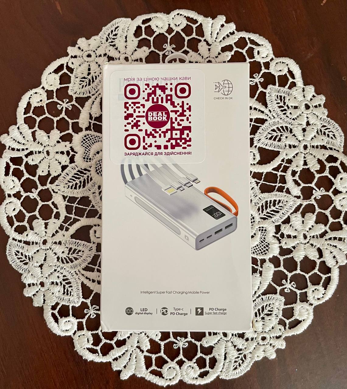 Юна отримала свою винагороду завдяки вмінню підібрати правильні слова у правильний час. Як результат — новенький павербанк від Dealbook відправився до авторки, щоб підтримувати її зв’язок зі світом, поки ті самі «в’язані серветки» ще чекають свого часу. Ми пишаємося, що в нашій спільноті — люди з великим серцем і чудовим почуттям гумору. Вітаємо Юну з першим офіційним заохоченням у нашій спільноті!
